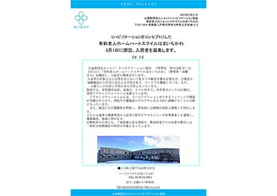 公益財団法人シルバーリハビリテーション協会が「有料老人ホームハートスマイルはまいちかわ」を3/1開設、2/24・25に内覧会を開催いたします