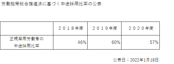 労働施策総合推進法に基づき、当法人の中途採用比率に関する情報を公表します。