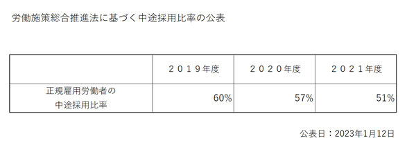 労働施策総合推進法に基づき、当法人の中途採用比率に関する情報を公表します。