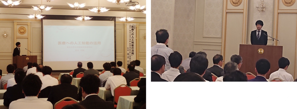 今回は、医療への人工知能の活用について、東京大学大学院医学系研究科公衆衛生学分野医師 岡本将輝氏をお招きして医療講演会を開催しました。 岡本先生は、疫学と統計学を利用した医療データベース研究の専門家ですが、近年は医療AI開発とその評価にも積極的に取り組んでおられます。医療へのAI活用の現状と課題、未来像についてご講演されました。