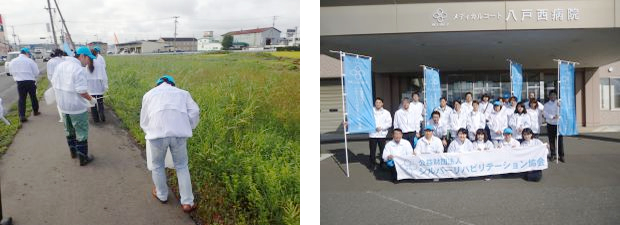 平成28年9月15日(木)に、公益財団法人シルバーリハビリテーション協会と同じSGグループの東北医療福祉事業協同組合の職員28名が参加し、2班に分かれて八戸西病院周辺や産業道路沿いの清掃活動を行いました。