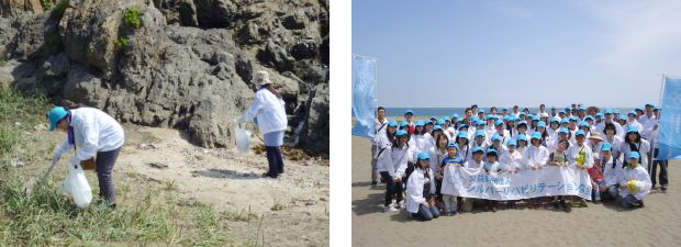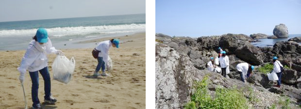 晴天の元、種差海岸~葦毛崎展望台まで、職員やその家族80名が2班に分かれ、およそ4,1kmを清掃しました。